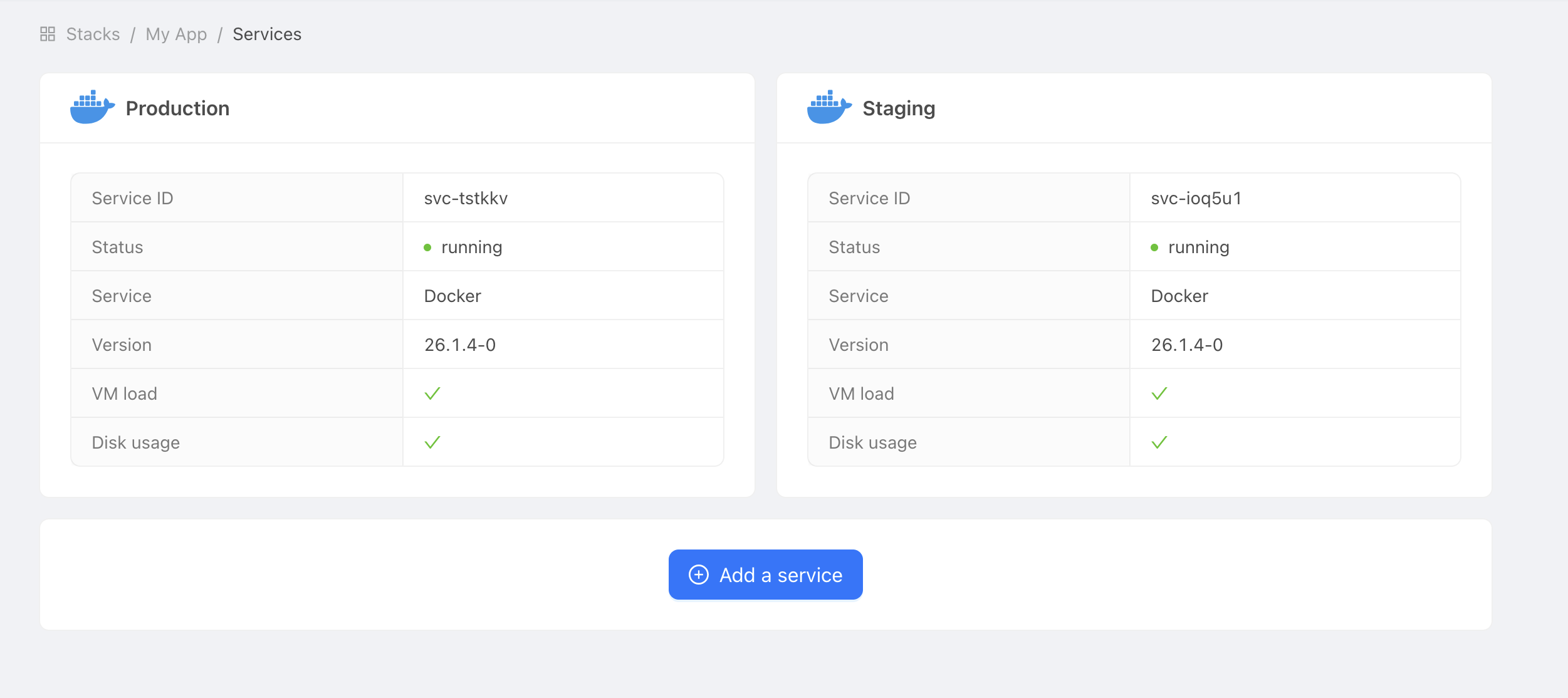 Begin by logging into your Stackhero dashboard and creating two Stackhero services, one for staging and one for production. To help stay organized and minimize errors, you might want to rename these services to "Staging" and "Production".