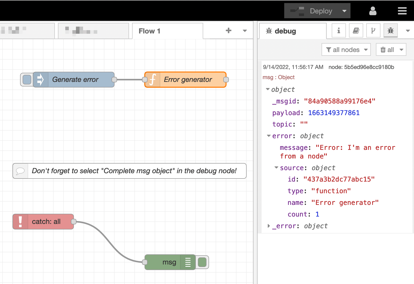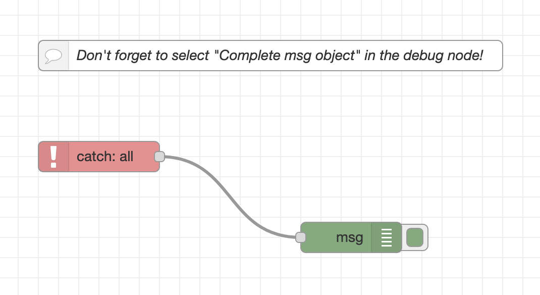 At times, nodes may generate errors. A practical solution is to set up a "catch all debug" flow to monitor these errors.