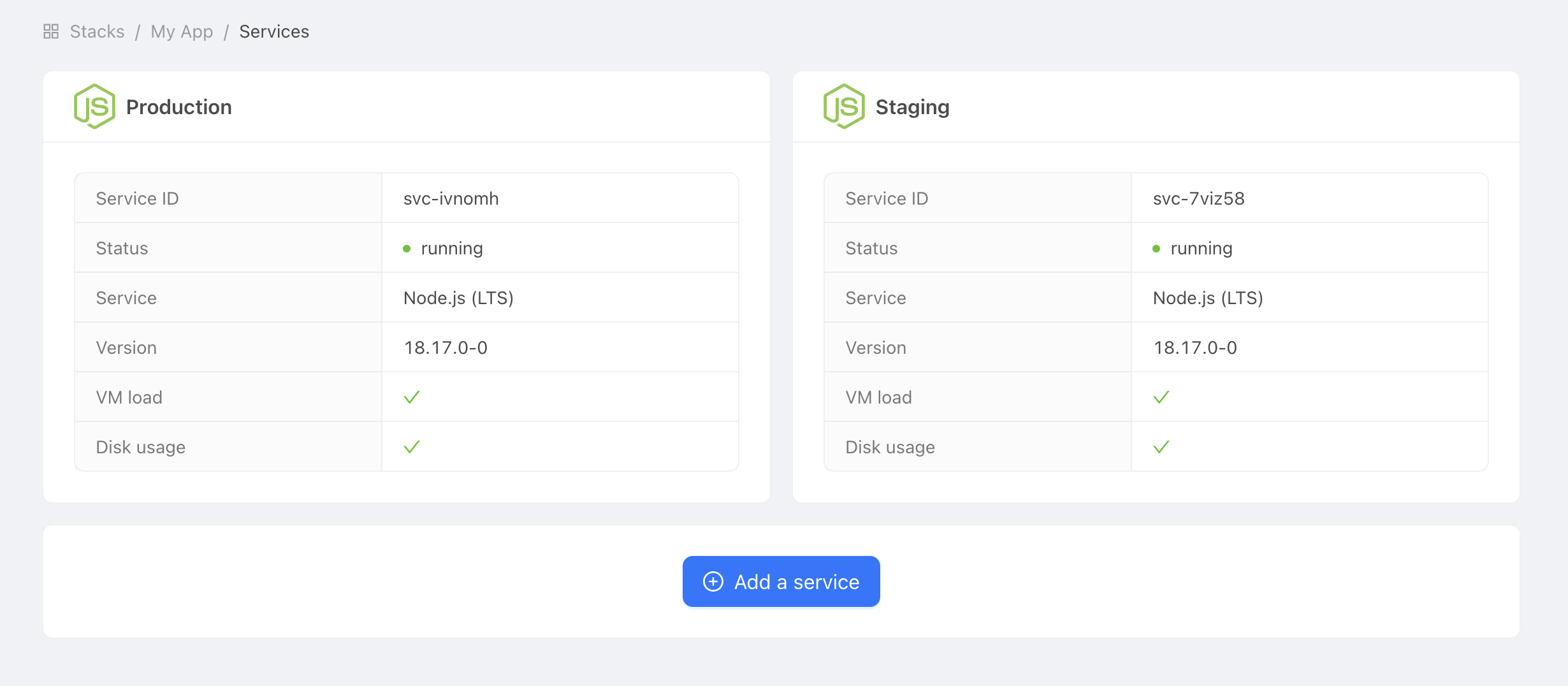 Head over to your Stackhero dashboard and create two Stackhero services, one for staging and one for production. For clarity, you might want to name them "Production" and "Staging".