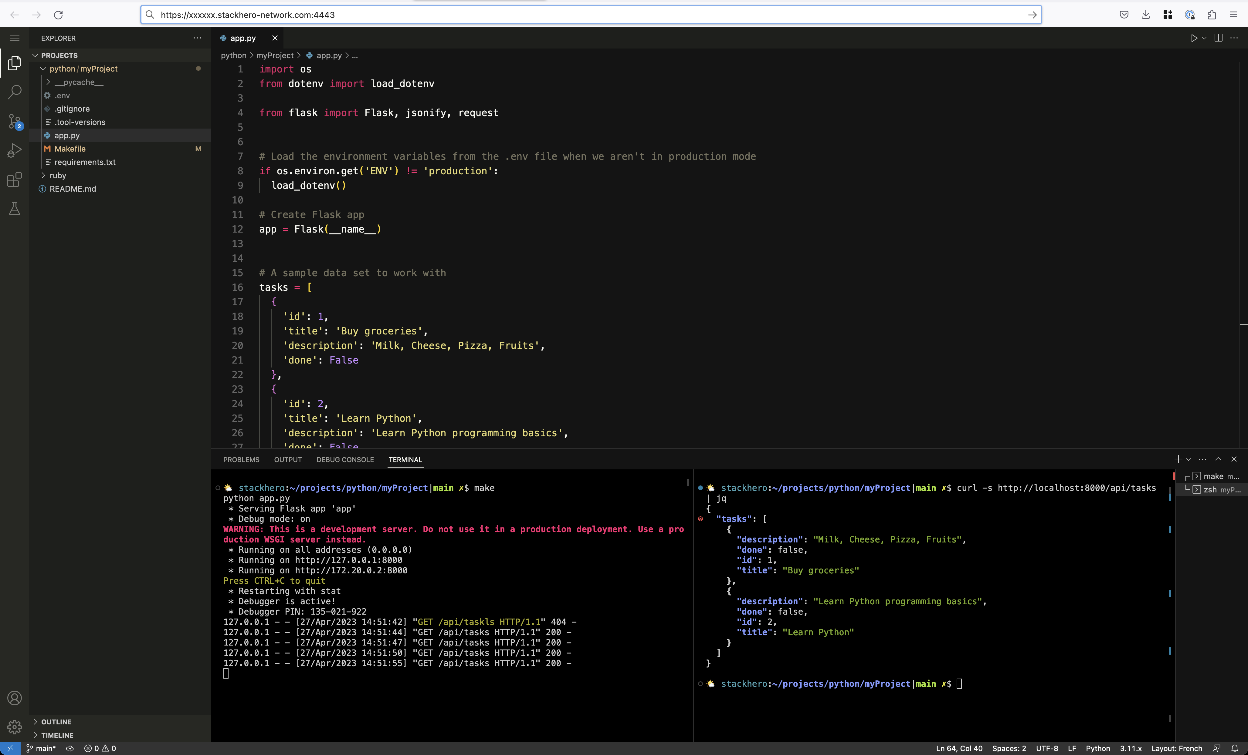 Ejemplo de despliegue de código Python en Stackhero usando el comando git push